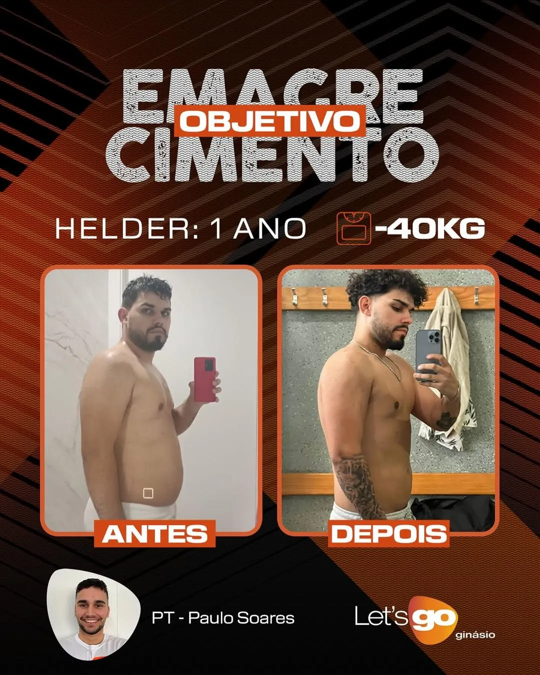 O Hélder chegou ao Let’s Go com um objetivo claro: voltar a sentir-se bem no seu corpo e na sua vida. Com o apoio da equipa Let's Go e do acompanhamento do PT Paulo Soares, ele transformou-se - menos 40 kg em apenas 1 ano. Aqui não vendemos promessas, ajudamos pessoas reais a obterem resultados reais. Se ele conseguiu, tu também consegues !